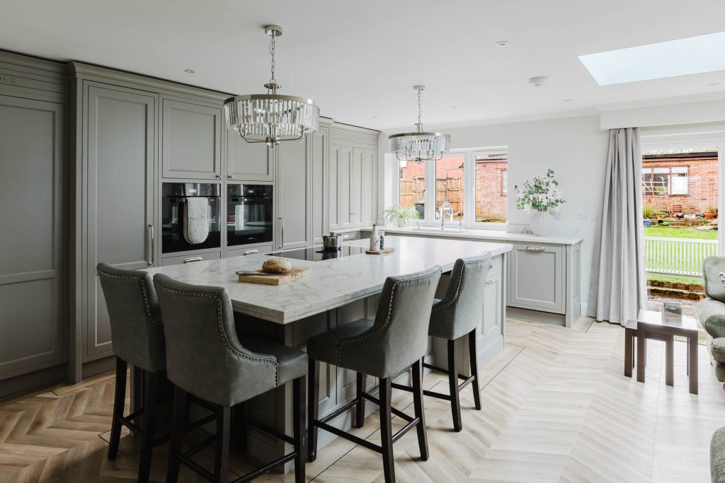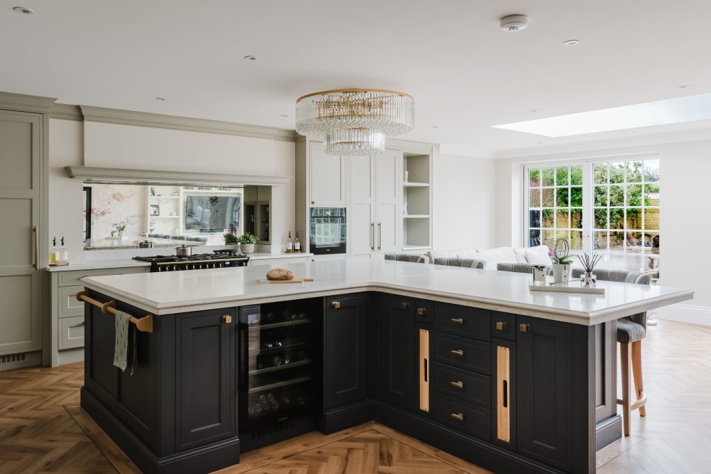 This Stone and Slate Blue shaker kitchen blends timeless style with everyday living, making it ideal for modern family life and entertaining. At the centre, an L-shaped kitchen island brings…