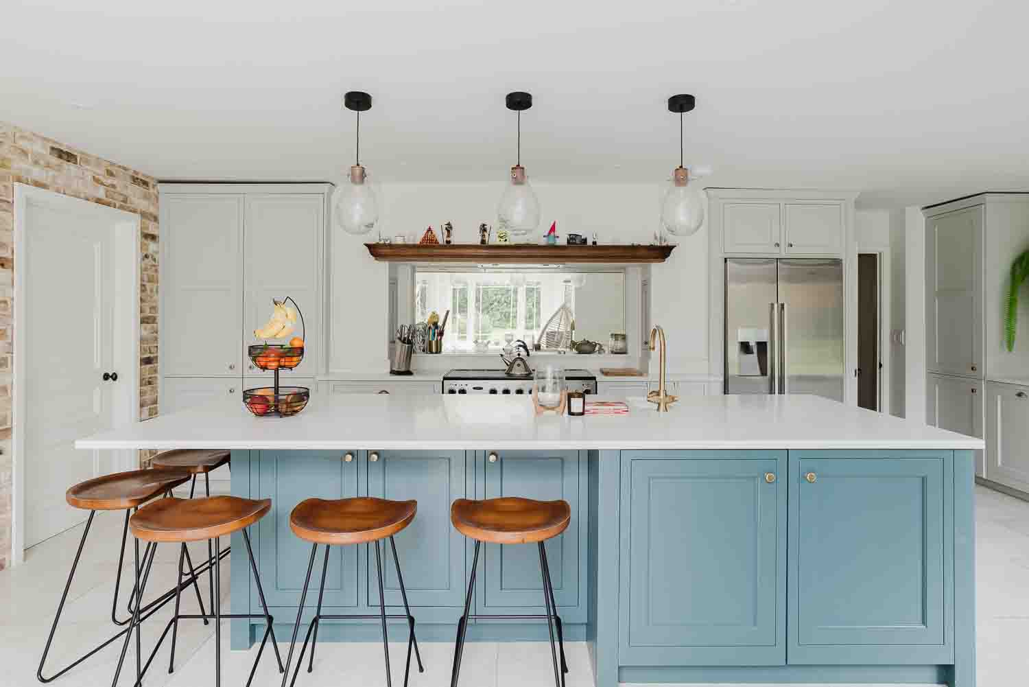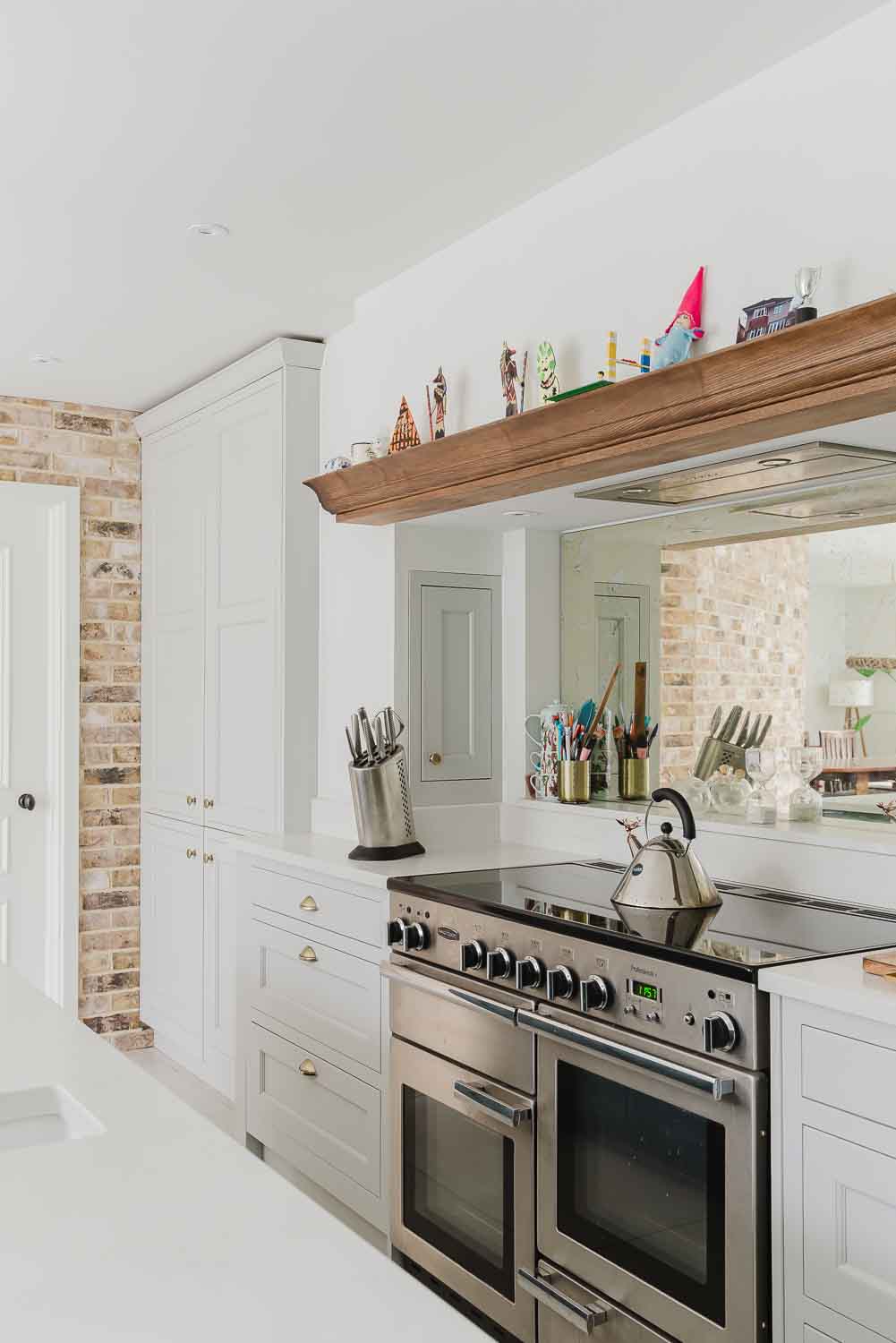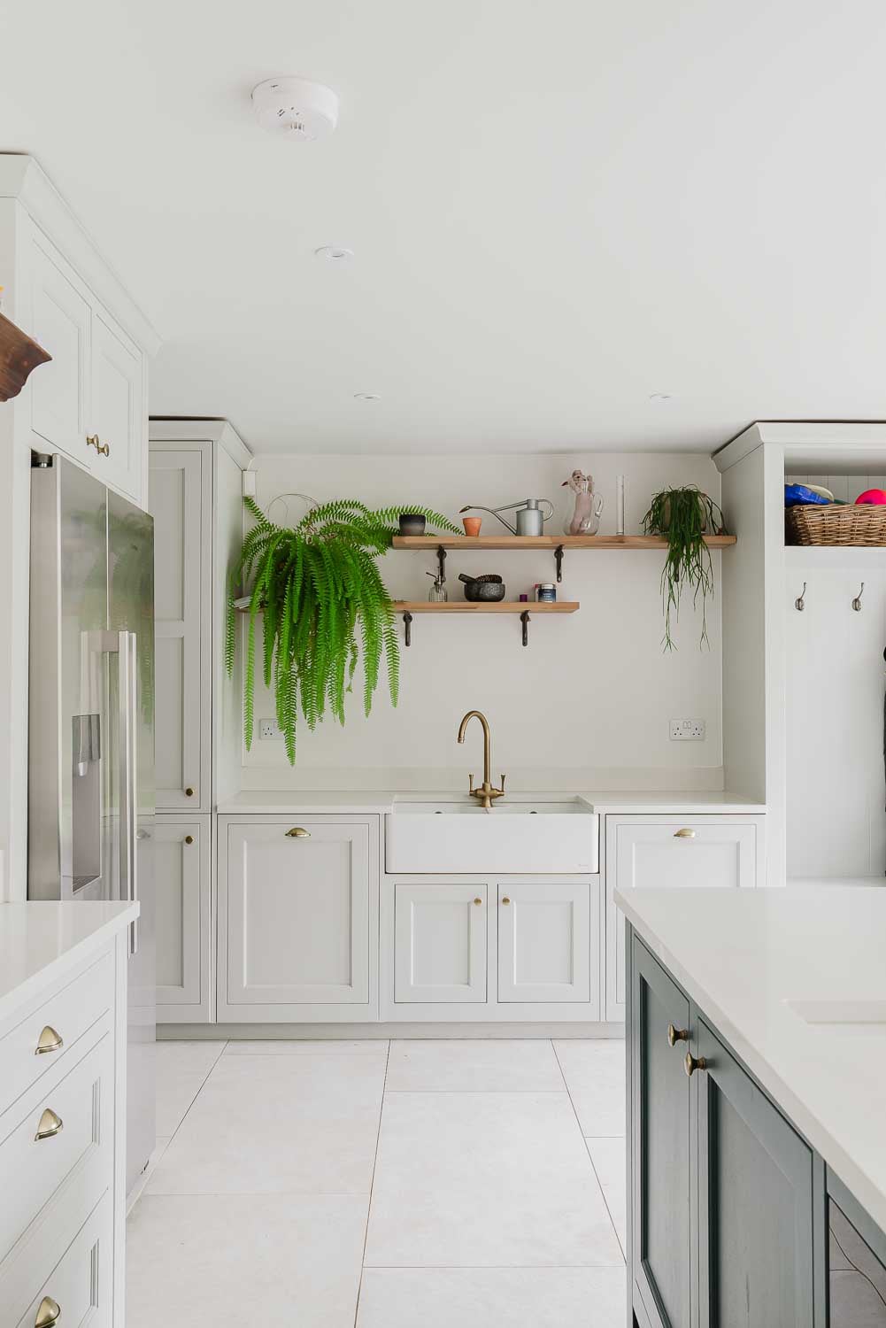 Nick and Emma’s kitchen is a perfect blend of classic elegance and contemporary design. The Belgravia cabinetry in Light Grey brings a timeless charm, while the Viridian island adds a striking contrast, making it the focal point of the space.